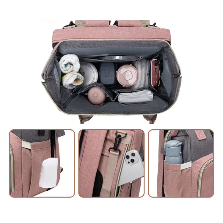 Que vous soyez au parc, chez des proches ou en brunch, cet espace intégré fait double emploi : un lit douillet pour bébé et une table à langer propre et pratique.