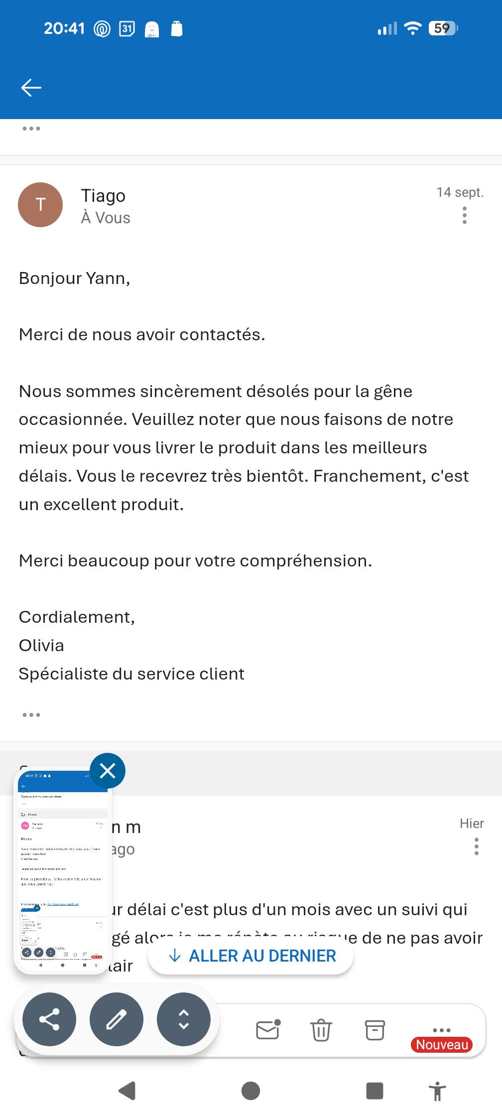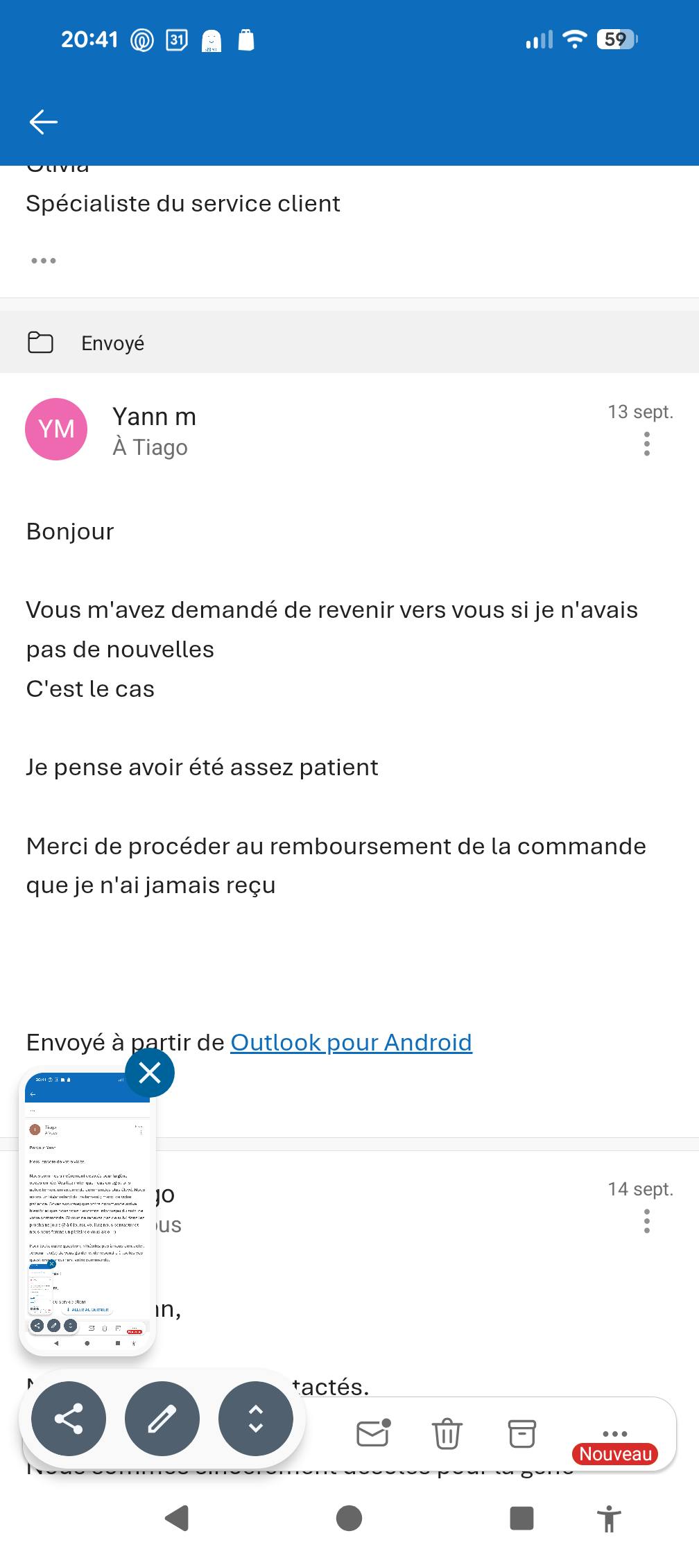 J'ai entamé des démarches juridiques et vais vous pourrir chaque secondeque j'aurai de dispo pour obtenir le remboursement